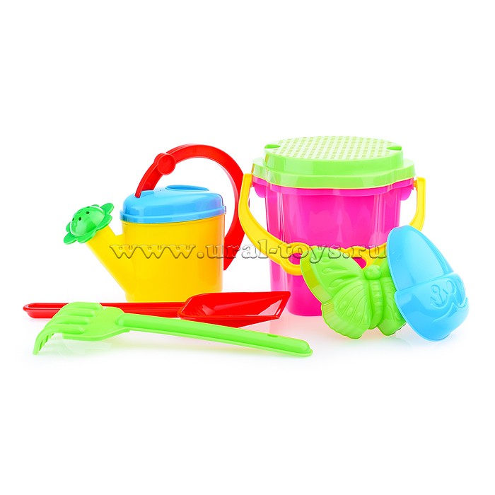 Песочный набор № 109 (ведро-цветок 0,7 л, сито, грабли 20см, совок 21 см, 2 формочки , лейка 0,3 л)