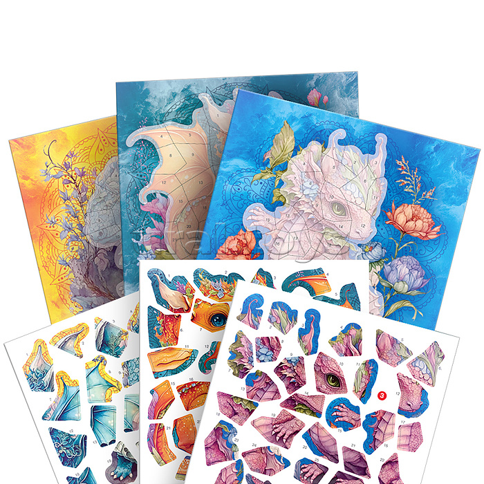 Аппликация наклейками по номерам. Дракончики