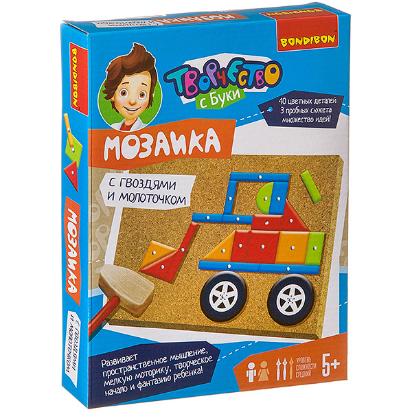 1_шт в наличии_2_шт в наличии_Набор для творчества BONDIBON. Мозаика с гвоздями и молоточком. Техника