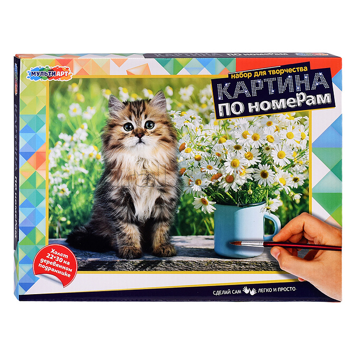 Холст по номерам на подрамнике "Котик с цветами" 22х30 см.