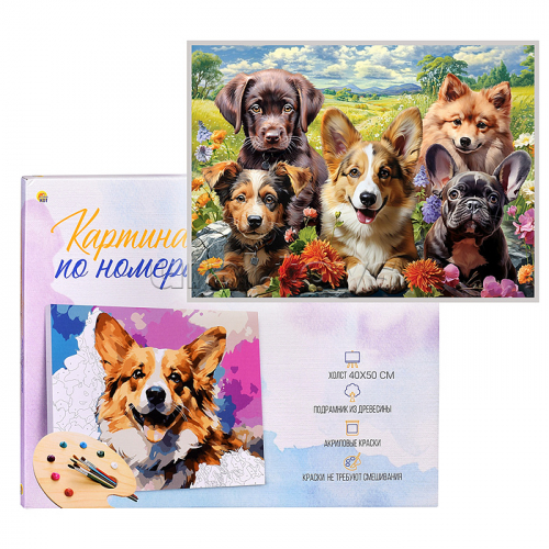 Холст с красками 20х20 по номерам "Малыши-животные" Белый щенок (16цв)