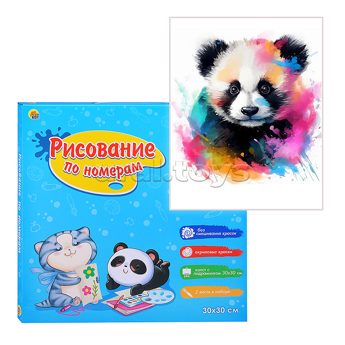 Холст с красками 30х30 по номерам "Малыши-животные" Красочная панда (20цв)