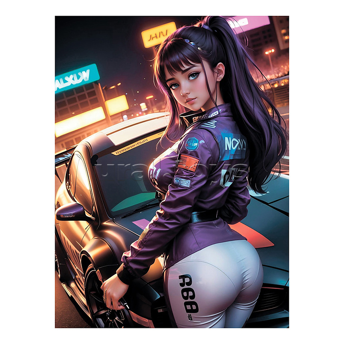 Холст с красками 30х40 по номерам "Гонки в ночи" (30 цв.)
