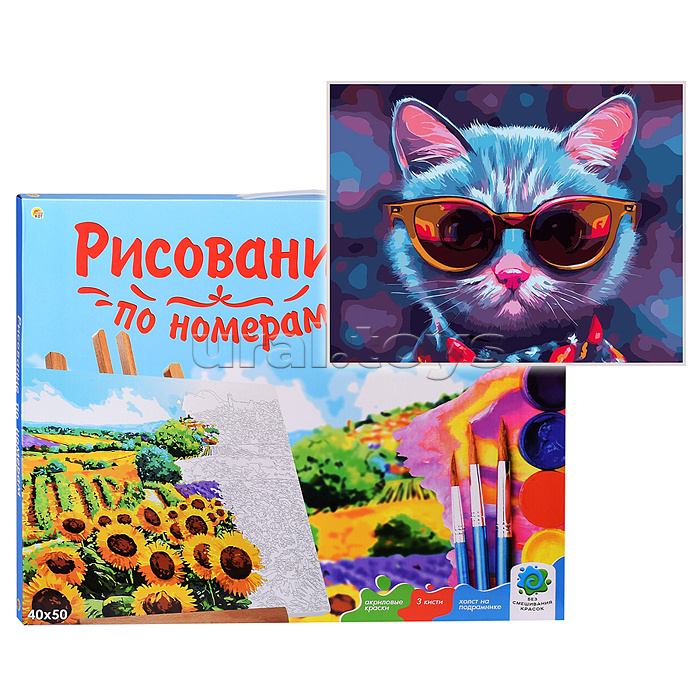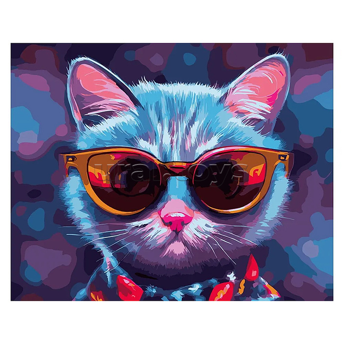 Холст с красками 40х50 по номерам. Кот в очках (24 цв.)