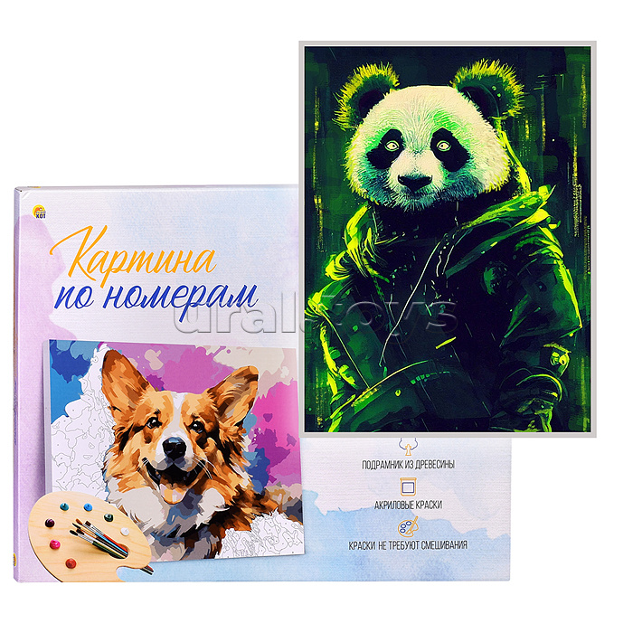 Холст с красками 40х50 по номерам "Модная панда" (20 цв.)