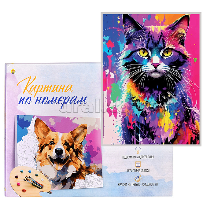 Холст с красками 40х60 по номерам "Красочный кот" (30 цв.)