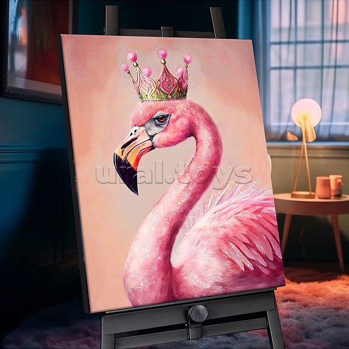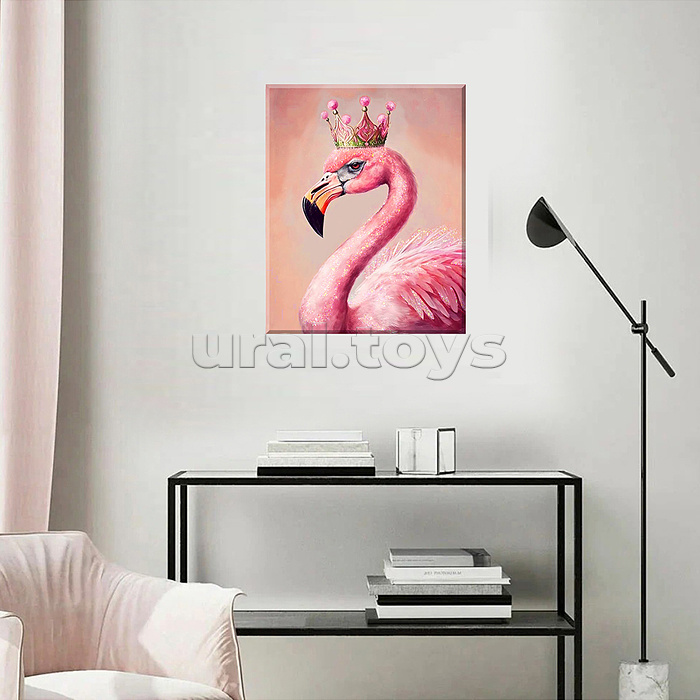 Картина по номерам с кристаллами из хрусталя 40х50 "Королевский фламинго" (20 цветов)
