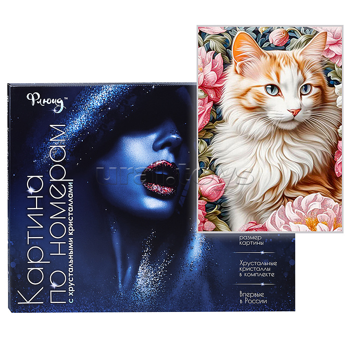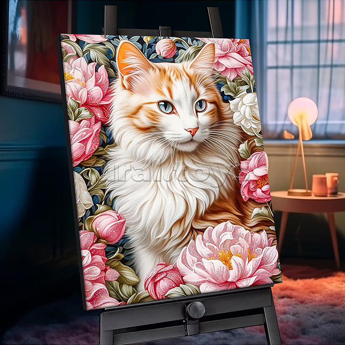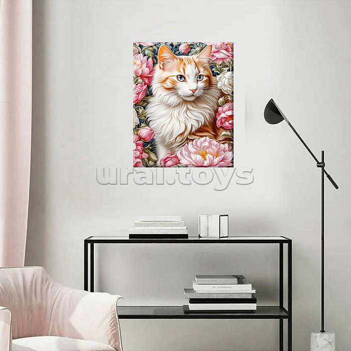 Картина по номерам с кристаллами из хрусталя 40х50 "Кошка в пионах" (28 цветов)
