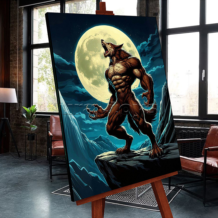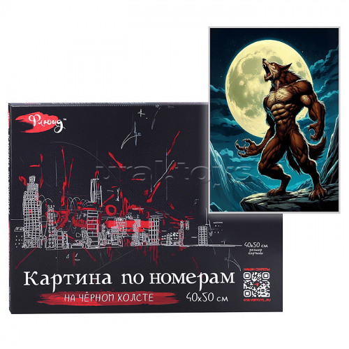 Картина по номерам со светящейся краской 40х50 "Человек- волк" чёрный холст (17 цветов)