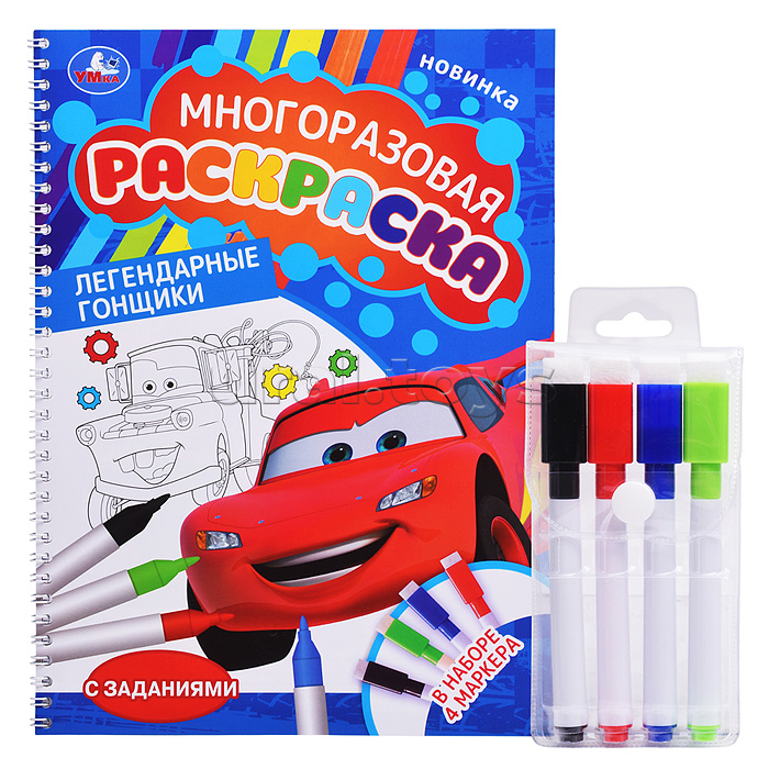 Легендарные гонщики. Многоразовая раскраска на пружине с цветными маркерами.