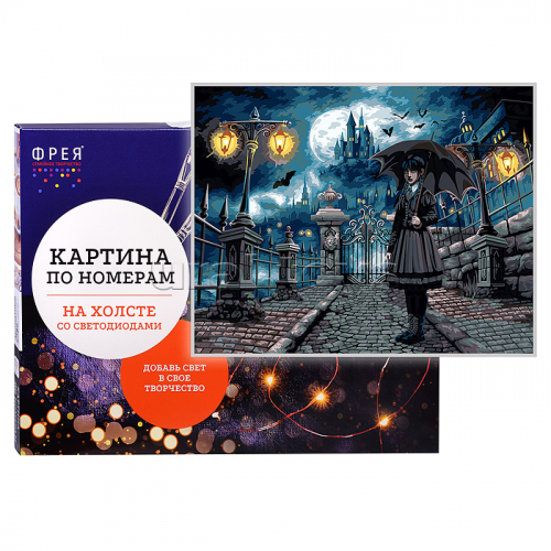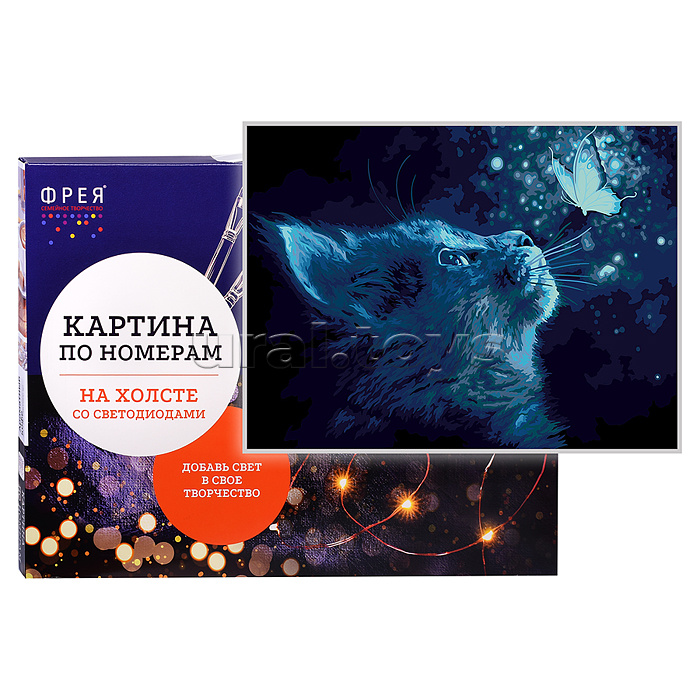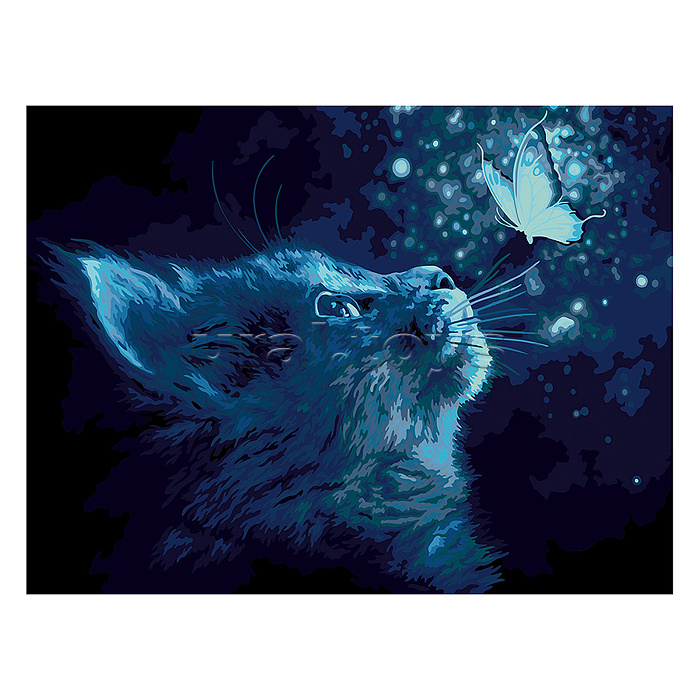 Набор для раскрашивания по номерам (со светодиодами) 40х30 "Котик в неоновом свете"