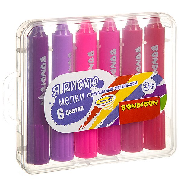 1_шт в наличии_Набор мелков Bondibon 6 цветов в пластиковой коробочке (розовые) ВВ3463