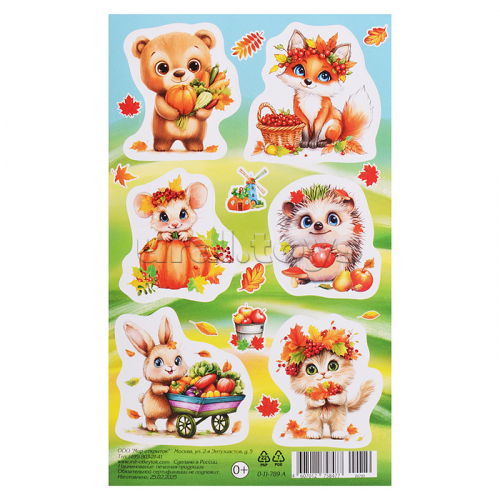 Наклейка 98x159мм "Зверята в осенней листве"