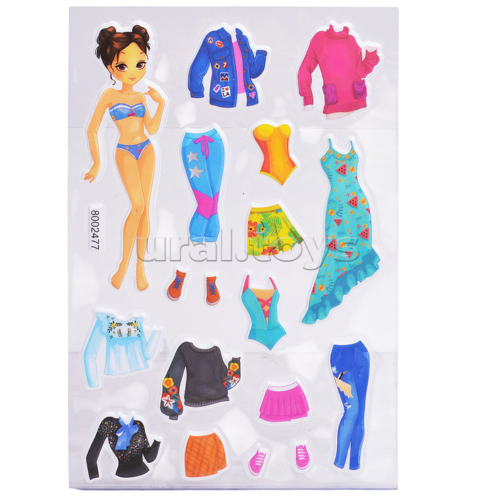 Наклейки мягкие "Одевайка модель" размер карточки 10x15 см, puff, объемные, многоразовые