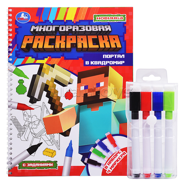 Портал в квадромир. Многоразовая раскраска на пружине с цветными маркерами.