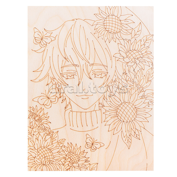 Роспись по дереву. Картина. Аниме "Солнечный цветок"