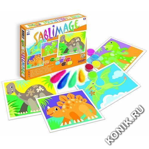 Набор для творчества песочные картинки Динозавры от Sentosphere предназначен для создания красивых картин, которыми дети будут гордиться и смогут повесить у себя в комнате. Рисование песком - это игровое и художественное занятие, способствующее развитию чувства гармонии, мелкой моторики рук и воображению. _x000D_ _x000D_ Рисование песком развивает в детях чувство прекрасного, аккуратность, усидчивость. Это настоящее волшебство, когда своими руками малыш создает чудесную картинку, которую можно подарить другу, маме или повесить в рамочке на стену!_x000D_ В набор входит:_x000D_ _x000D_ 15 баночек песка разного цвета;_x000D_ 4 надрезанные картинки с клейким слоем под пленкой;_x000D_ маленький безопасный нож для отклеивания клейкого слоя;_x000D_ инструкция, предлагающая многочисленные варианты цветов для каждой картинки._x000D_ _x000D_ _x000D_ Наборы для творчества Сентосфере продаются в ярких красочных коробках и идеально подходят для подарка. _x000D_ Все детали набора изготовлены из высококачественных и гипоаллергенных материалов.