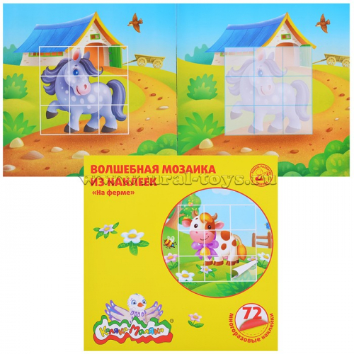 Волшебная мозаика из наклеек "На ферме" 72 многоразовые наклейки 2+