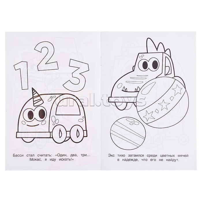 Весёлые машинки. Машинки Мокас. Раскраска. 145х210мм.