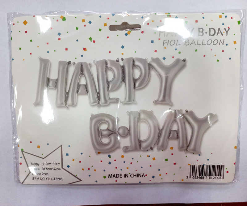 Воздушные шары HAPPY B-DAY Серебро
