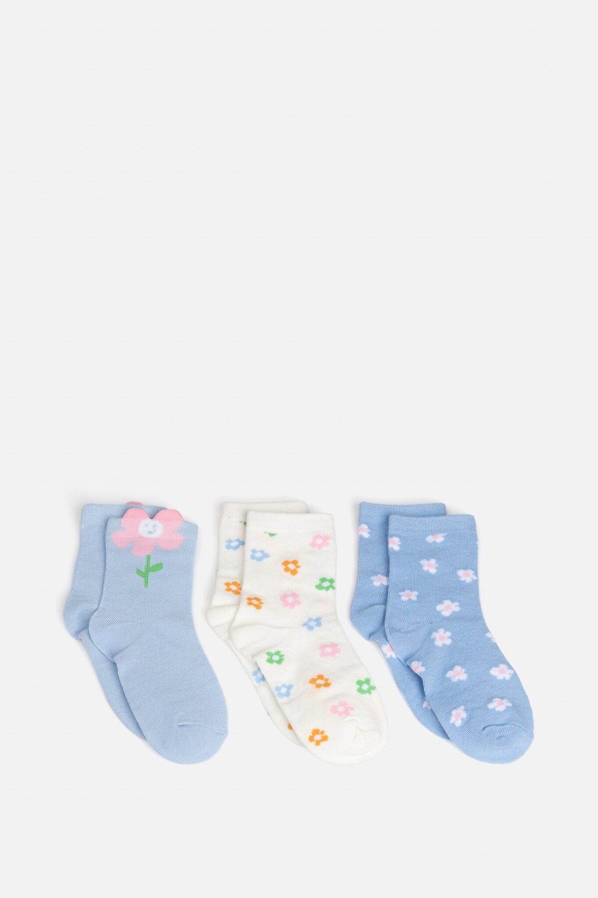Набор из 3-х пар детских носков для девочки с яркими и привлекательными рисунками станет прекрасным дополнением к повседневному образу. Модель изготовлена из мягкой хлопковой пряжи, что обеспечивает комфорт в течение всего дня. Эластичная резинка создает надежную посадку по ноге. В комплект входят три варианта расцветки: голубые с одним большим цветочком, голубые с множеством маленьких цветочков и белые с цветочками. Этот набор станет отличным выбором для дополнения к повседневным образам, придавая им яркого и стильного акцента.