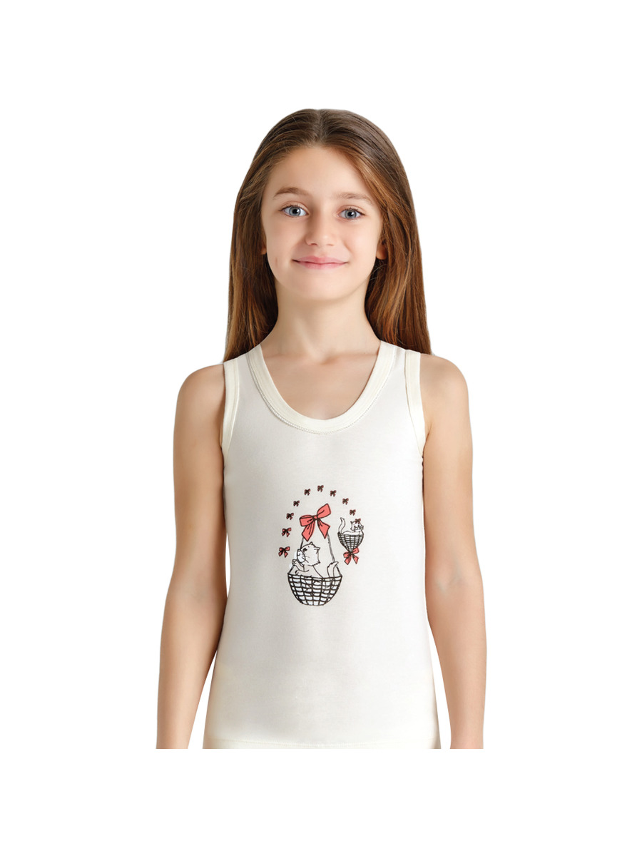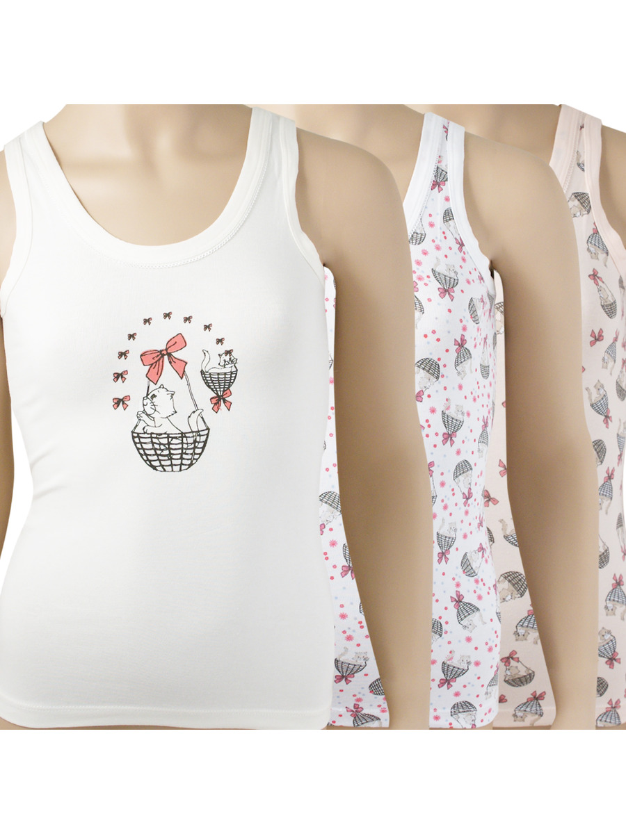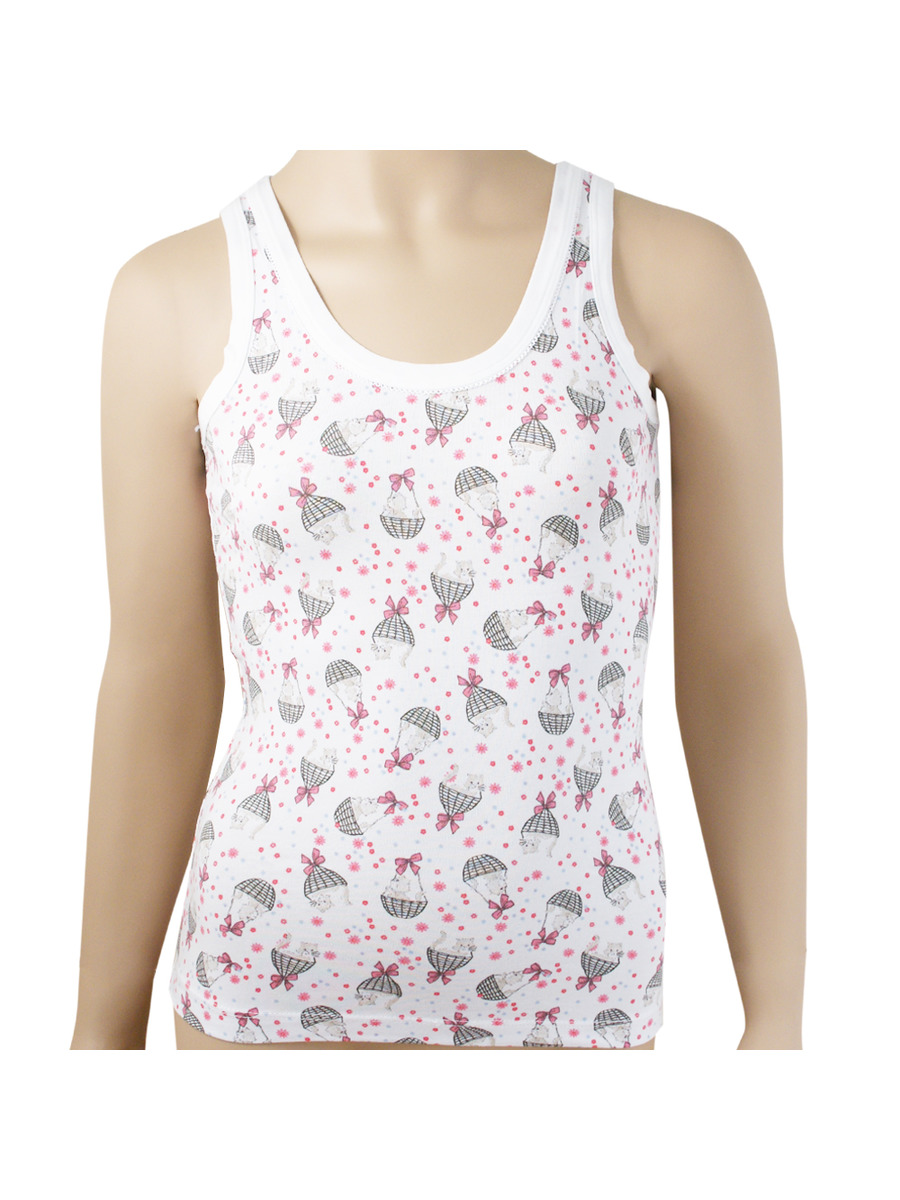 Майка из хлопка для девочки, цвет мультиколор, рисунок котик, для комплекта покупают трусы: арт. N5126