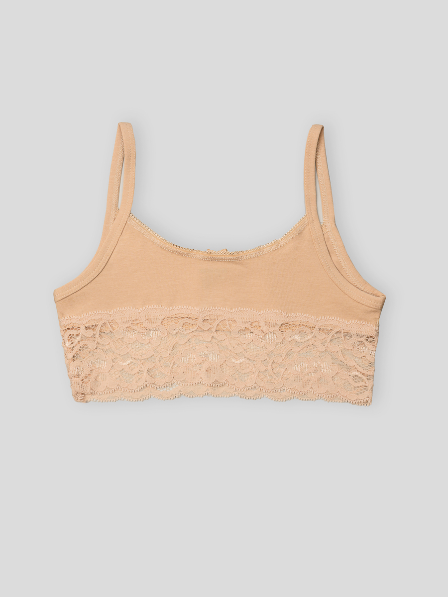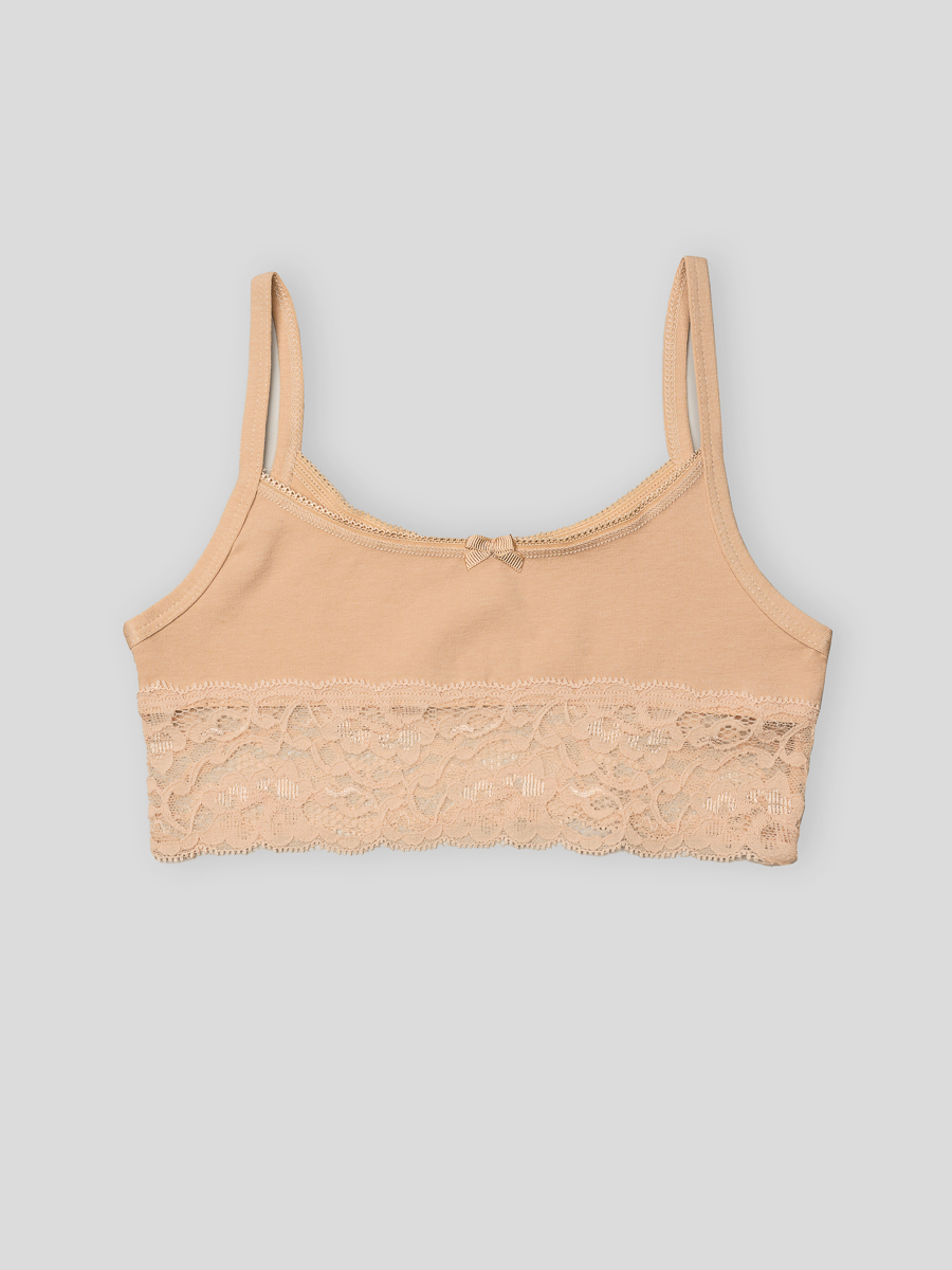 Топ из хлопка для девочки на тонких бретельках с кружевом, цвет белый, без рисунка, для комплекта покупают трусы для девочки арт.N5940