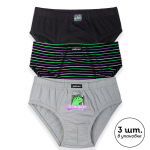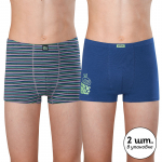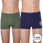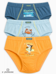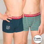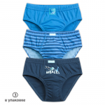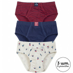 Состав: низ: 93%хлопок 7%эластан, низ2: 93%хлопок 7%эластанОписание: Комплект из двух трусов для мальчика. 100% хлопок. Выполнены из эластичного хлопкового трикотажа. Гипоаллергенный, износоустойчивый и приятный к телу материал. Линия талии на широком тканом эластике. Принт полоски придают трусам спортивности. Подходят для повседневной носки, сна, занятий спортом, подвижных игр. Не боятся частых стирок, не растянутся и не полиняют.