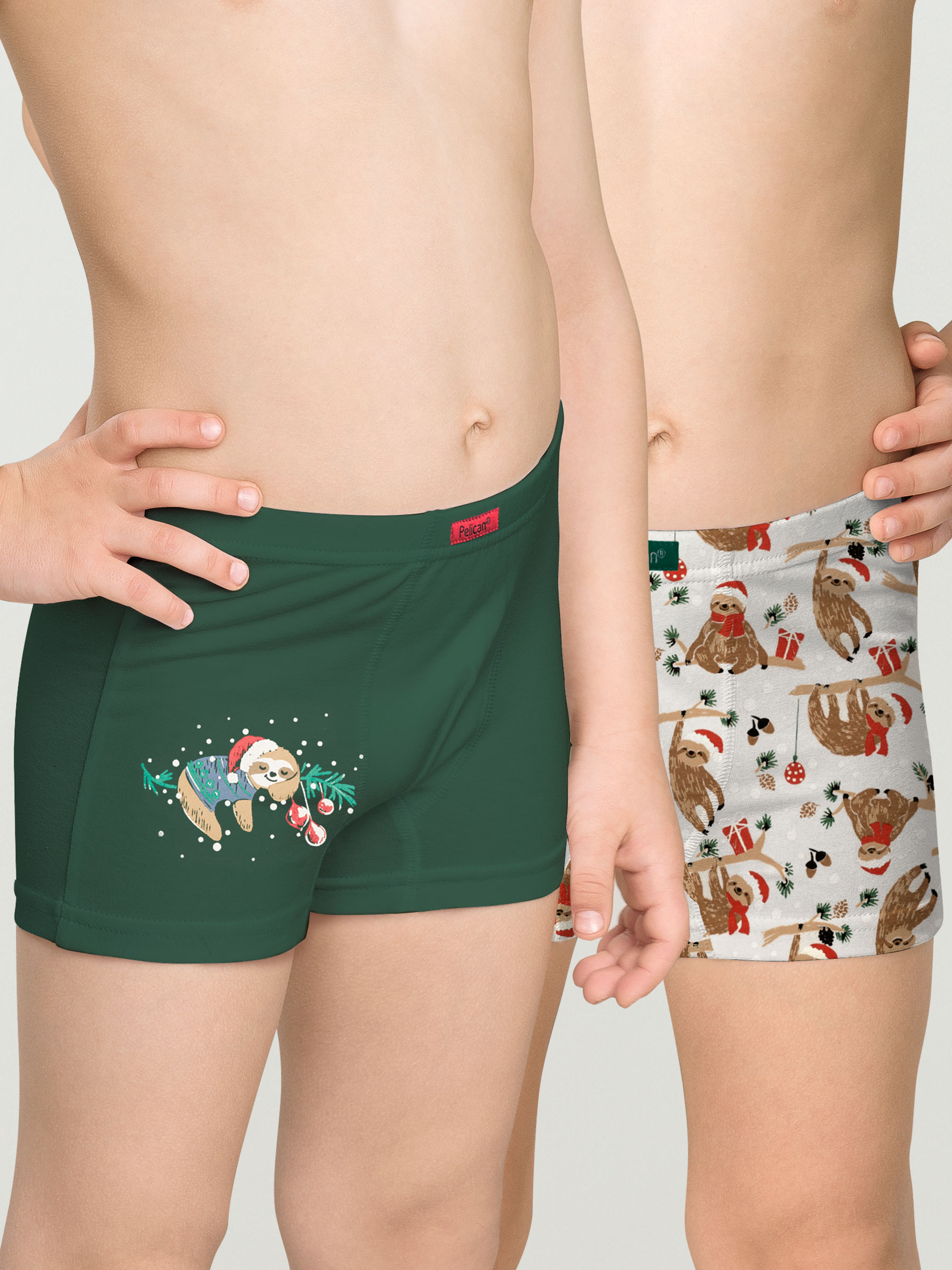 Состав: низ: 93%хлопок 7%эластан, низ2: 93%хлопок 7%эластанОписание: Детские трусы шортики для мальчика, набор 2 штуки с новогодним принтом. Составляя детский гардероб, очень важно подобрать комфортные и удобные трусы для детей и подростков для повседневной носки на каждый день и сна. Детские трусы шорты для подростка с эластичной резинкой по талии надежно держатся на теле ребенка, не скручиваются, не закатываются и не сползают, а дышащая ткань позволяет избежать натирания нежной кожи. Добавление эластана делает трикотажные трусы боксеры эластичными и более удобными при надевании. Плотная, но свободная модель и средняя посадка не сковывают движения парня, что важно маленьким детям. Милое и практичное детское нижнее белье порадует родителей долговечностью. Хлопковые подростковые повседневные трусики шортики не боятся многочисленных стирок, не растянутся и не полиняют. Детская одежда для мальчиков должна отвечать моде, комплект трусы для малыша представляет только молодежные цвета, которые порадуют и поднимут настроение современному мальчику.