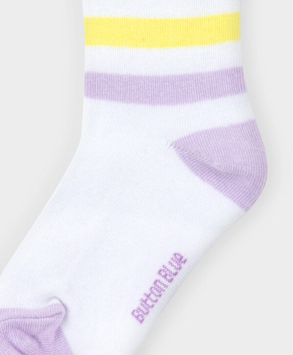 Набор из двух пар белых носков с принтами. Отличное дополнение к гардеробу. Носки средней длины с разноцветным принтом выполнены из качественного материала - 80% хлопка, 18% полиамида и 2% эластана. Они приятные к телу и хорошо тянутся.