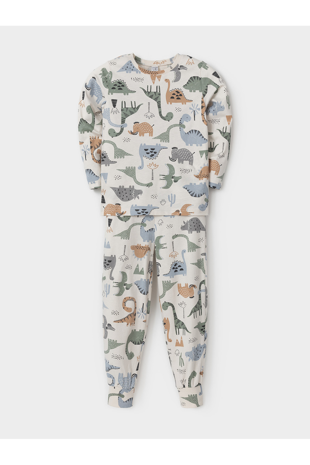 Пижама для мальчика из натурального хлопка. Джемпер с длинными втачными рукавами и брюки с эластичной резинкой в поясе. Мягкие манжеты по низу брюк сделаны из материала в рубчик. Оригинальная набивка выполнена из стойких текстильных гипоаллергенных красителей. Изделие сохраняет цвет и форму после многократных стирок. Все трикотажные полотна производятся в соответствии с нормами швейцарского сертификата ЭкоТекс.