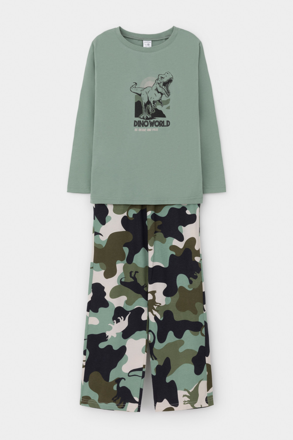 Crockid Пижама К 1600 эвкалипт, камуфляж с динозаврами Crockid