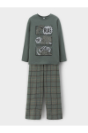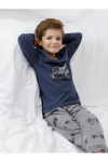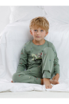 Трикотажный пижамный комплект из натурального хлопка. У джемпера длинные втачные рукава и эластичная мягкая горловина. Брюки с удобным поясом на резинке. Оригинальная набивка и принт выполнены из стойких, гипоаллергенных текстильных красителей. Все трикотажные полотна производятся в соответствии с нормами Швейцарского сертификата ЭкоТекс.