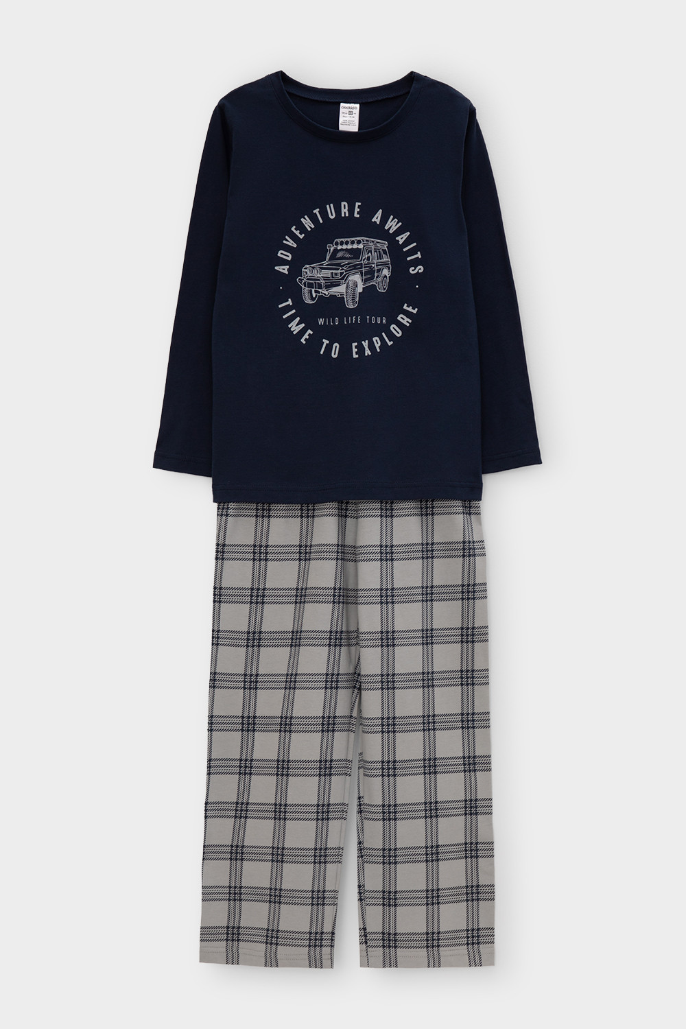 Crockid Пижама К 1600 индиго, текстильная клетка Crockid