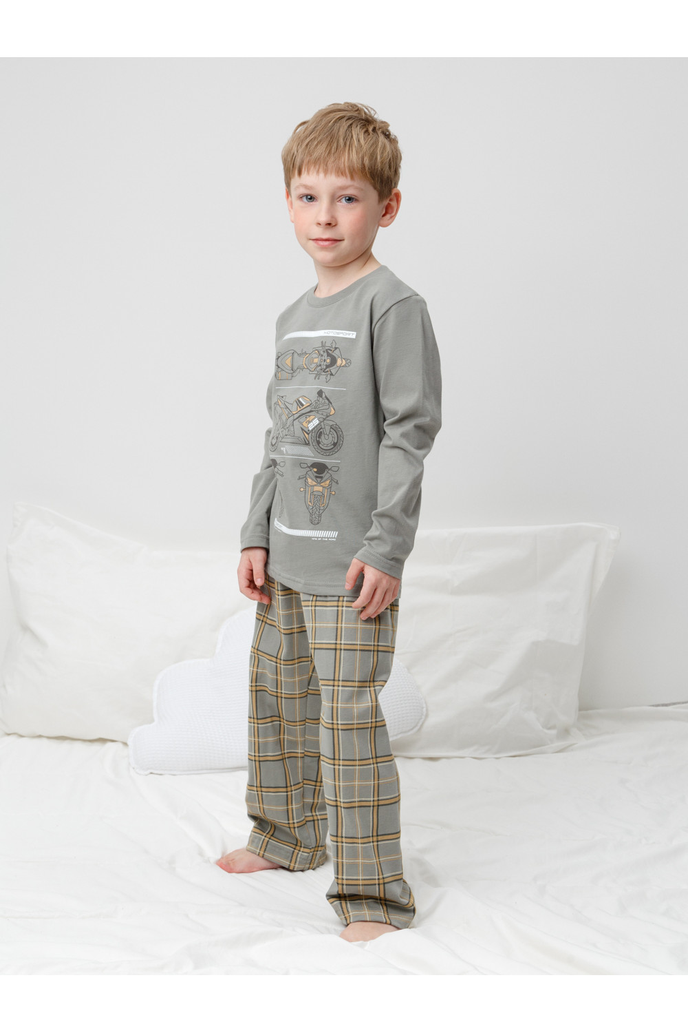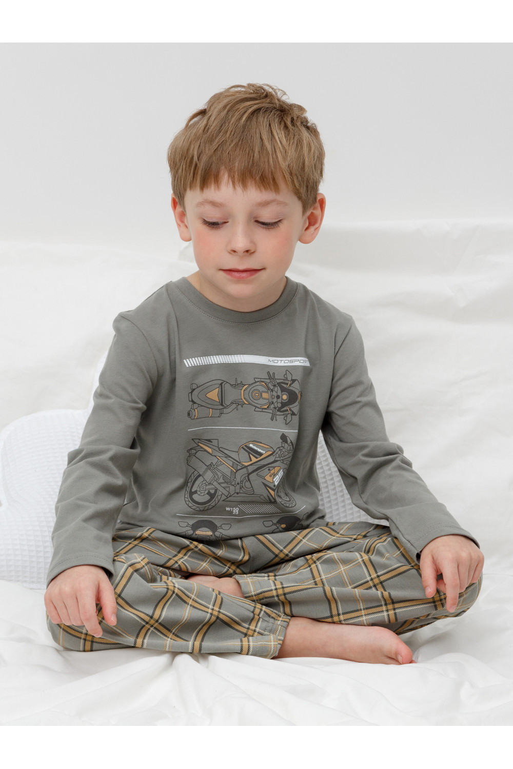 Трикотажный пижамный комплект из натурального хлопка. У джемпера длинные втачные рукава и эластичная мягкая горловина. Брюки с удобным поясом на резинке. Оригинальная набивка и принт выполнены из стойких, гипоаллергенных текстильных красителей. Все трикотажные полотна производятся в соответствии с нормами Швейцарского сертификата ЭкоТекс.