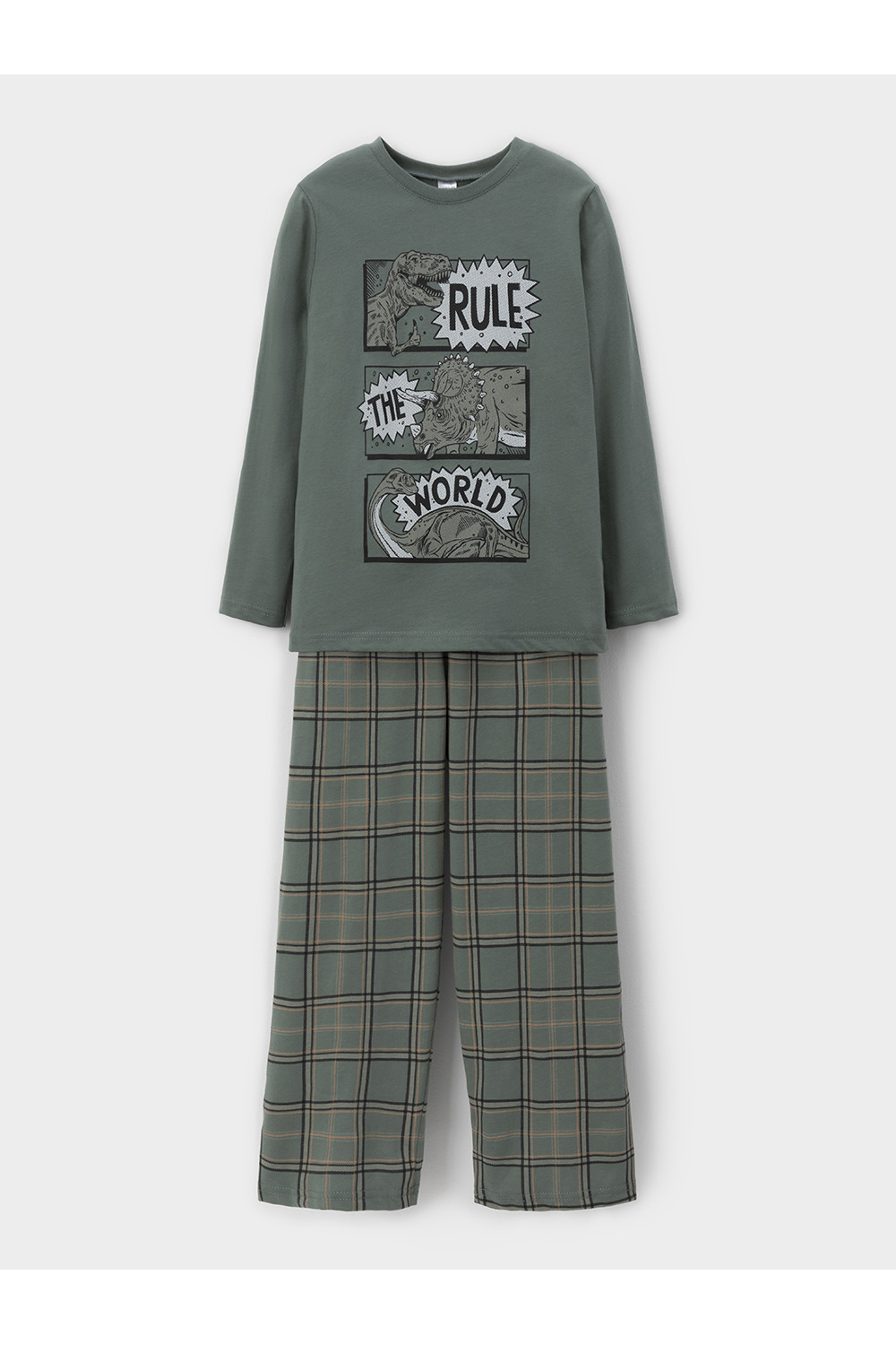 Пижама для мальчика из натурального хлопка. Джемпер с длинными втачными рукавами и прямые брюки с эластичной резинкой в поясе. Оригинальная набивка и принт выполнены из стойких текстильных гипоаллергенных красителей. Изделие сохраняет цвет и форму после многократных стирок. Все трикотажные полотна производятся в соответствии с нормами швейцарского сертификата ЭкоТекс.