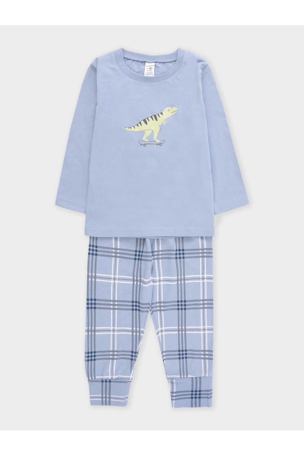 Пижама для мальчика из натурального хлопка. Джемпер с длинными втачными рукавами и брюки с эластичной резинкой в поясе. Мягкие манжеты по низу брюк сделаны из материала в рубчик. Оригинальная набивка и принт выполнены из стойких текстильных гипоаллергенных красителей. Изделие сохраняет цвет и форму после многократных стирок. Все трикотажные полотна производятся в соответствии с нормами швейцарского сертификата ЭкоТекс.