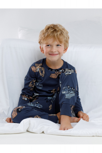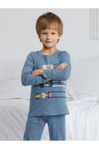 Трикотажная пижама из натурального хлопка. Джемпер с длинными втачными рукавами и брюки с эластичной резинкой в поясе. Мягкие манжеты на рукавах и по низу брюк. Оригинальная набивка и принт выполнены из стойких текстильных гипоаллергенных красителей. Изделие сохраняет цвет и форму после многократных стирок. Все трикотажные полотна производятся в соответствии с нормами швейцарского сертификата ЭкоТекс.