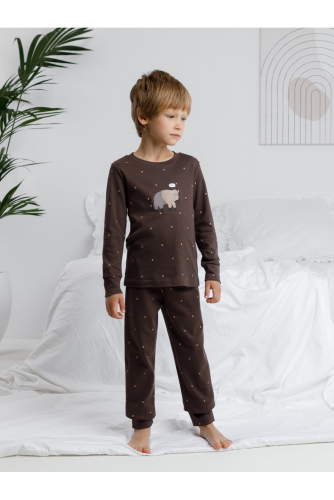 Трикотажная пижама из натурального хлопка. Джемпер с длинными втачными рукавами и брюки с эластичной резинкой в поясе. Мягкие манжеты на рукавах и по низу брюк. Оригинальная набивка и принт выполнены из стойких текстильных гипоаллергенных красителей. Изделие сохраняет цвет и форму после многократных стирок. Все трикотажные полотна производятся в соответствии с нормами швейцарского сертификата ЭкоТекс.