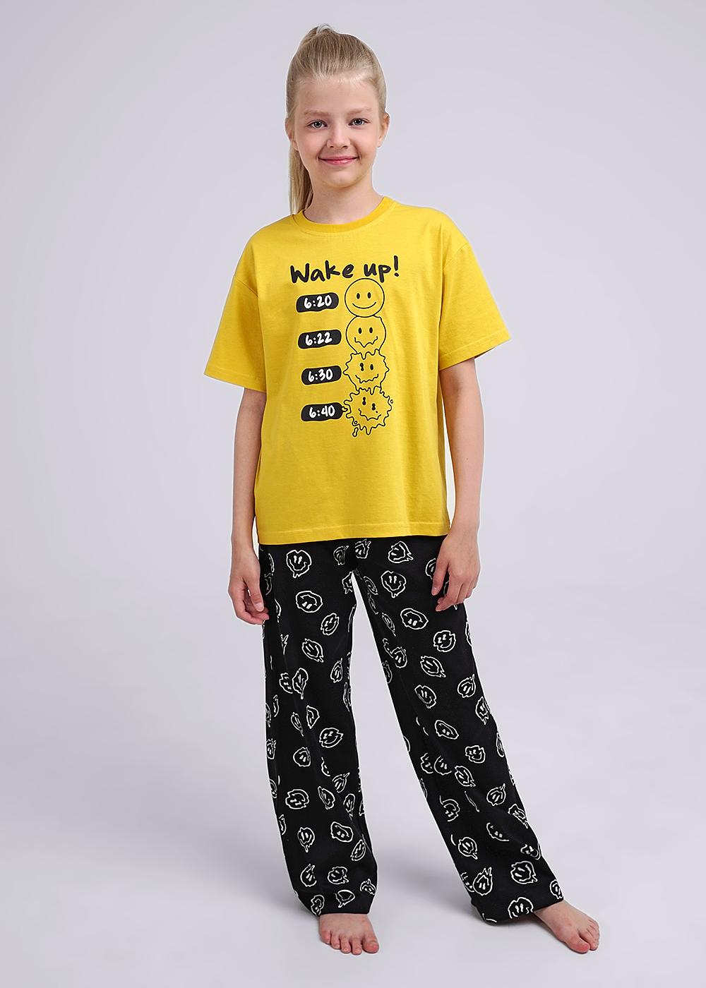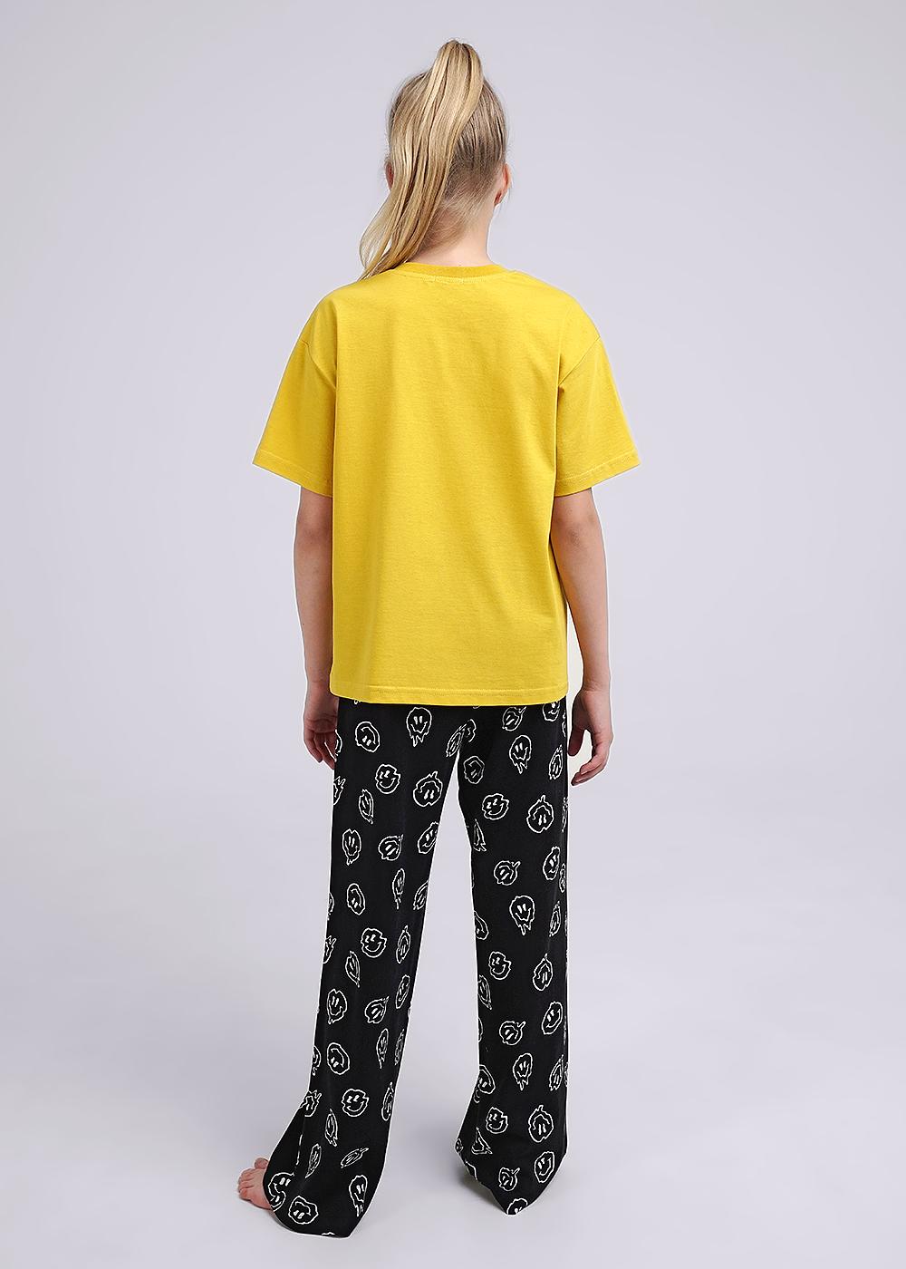 Описание: Вау! Стильная хлопковая пижама, как у мамы! Футболка среднего обьёма с милым принтом по переду. Широкие прямые брюки с трендовыми набивками. Резинка по поясу для комфортной посадки.
