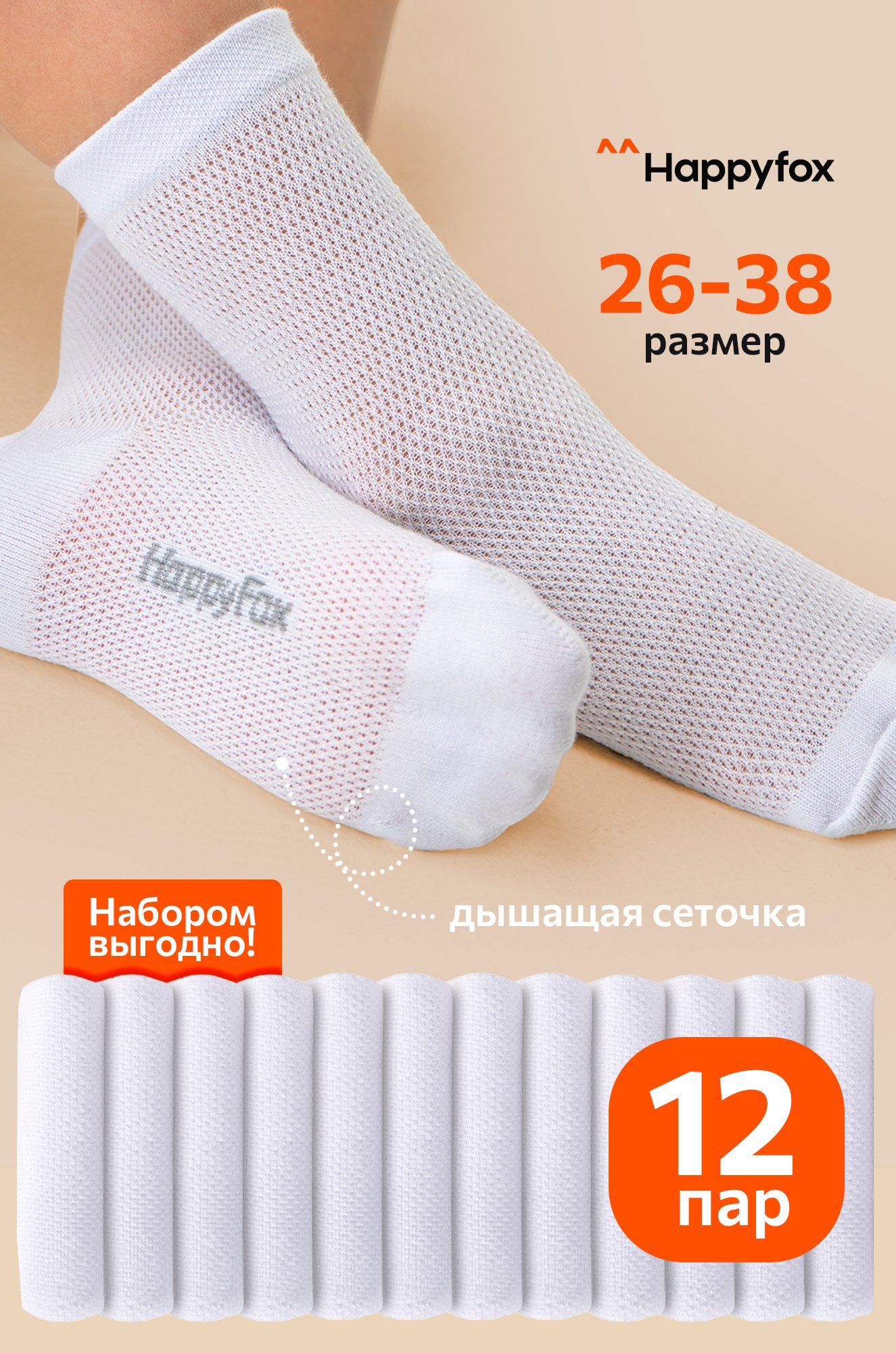 Набор детских носков в сетку 12 пар Happyfox