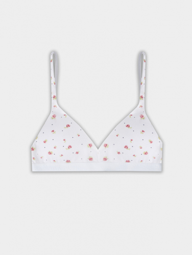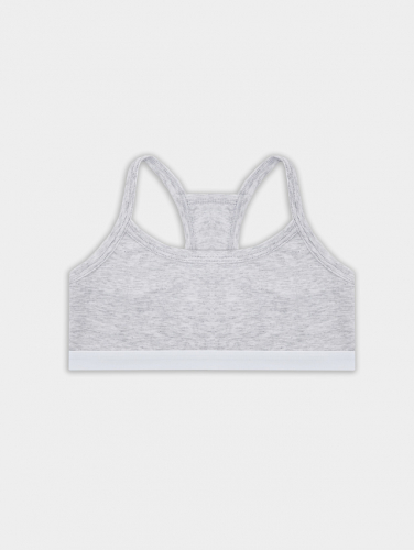 Хлопковое бюстье прилегающего силуэта для девочек. Выполнено из легкой и приятной к телу трикотажной рибаны. Вырез горловины и проймы окантованы эластичной тесьмой. На бретелях есть кольца-регуляторы. По нижнему краю бюстье расположена удобная и стильная жаккардовая тесьма. Идеально!