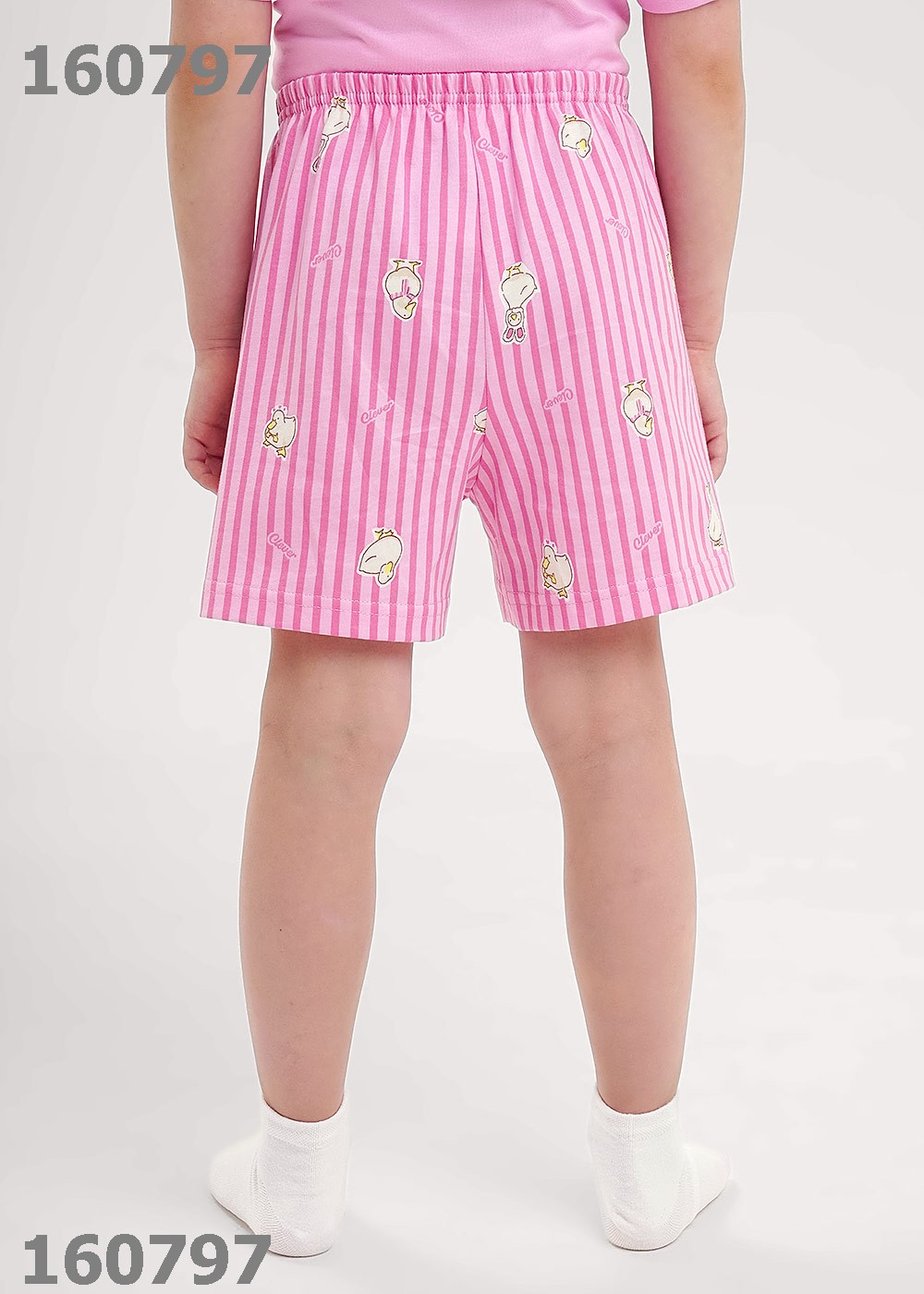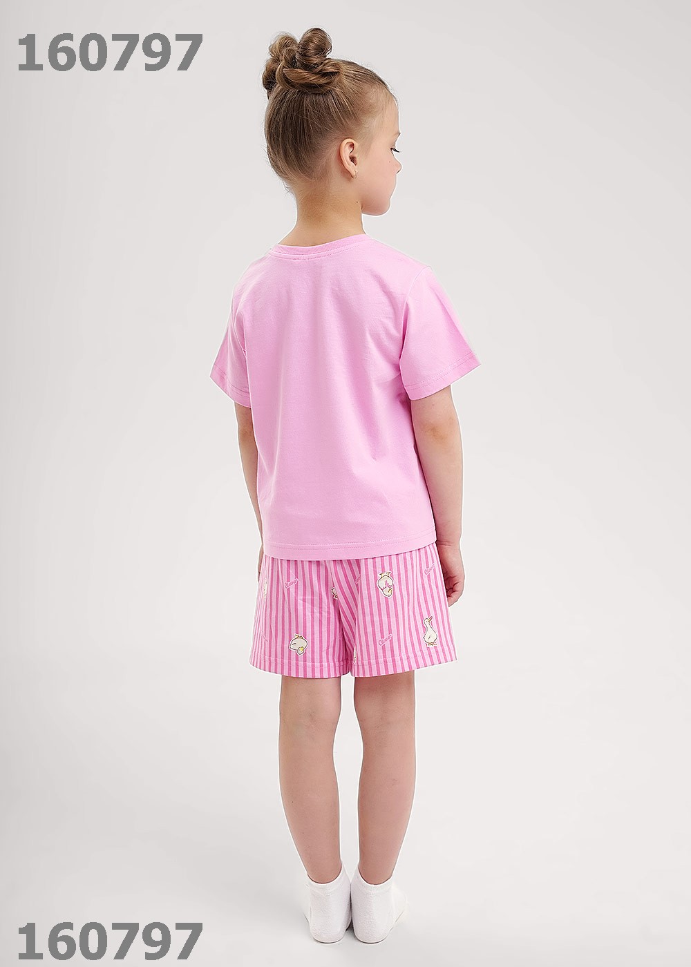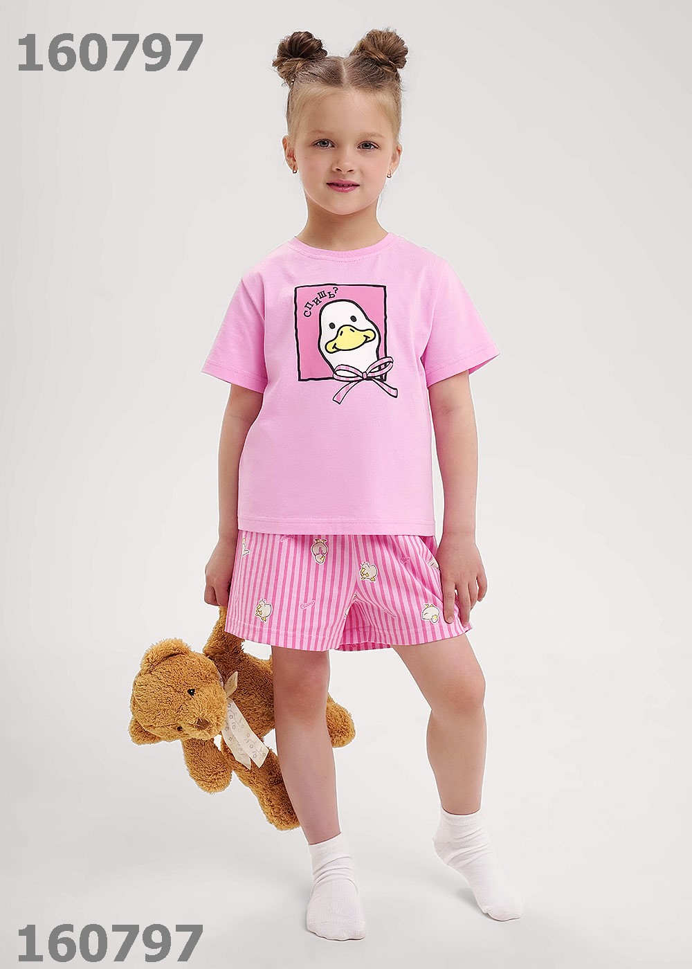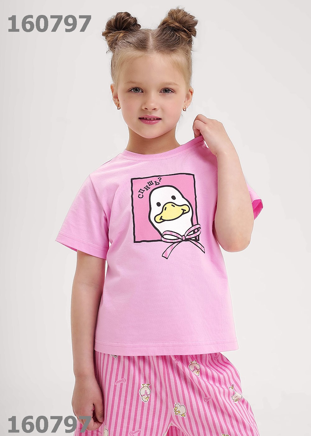 "Описание: Комплект хлопковой пижамы из футболки и шорт. Футболка свободного кроя дополнена эластичной горловиной и стильным принтом. Шорты среднего объема, эластичный пояс обеспечит комфорт и идеальную посадку.