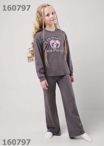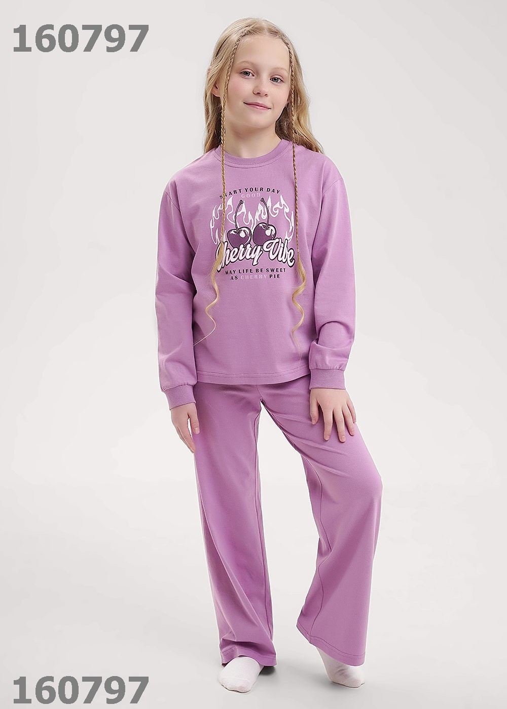 "Описание: Комплект хлопковой пижамы из джемпера и брюк. Джемпер свободного кроя дополнен эластичной горловиной и манжетами. Брюки среднего объема, эластичный пояс обеспечит комфорт и идеальную посадку.