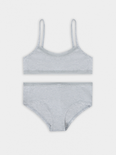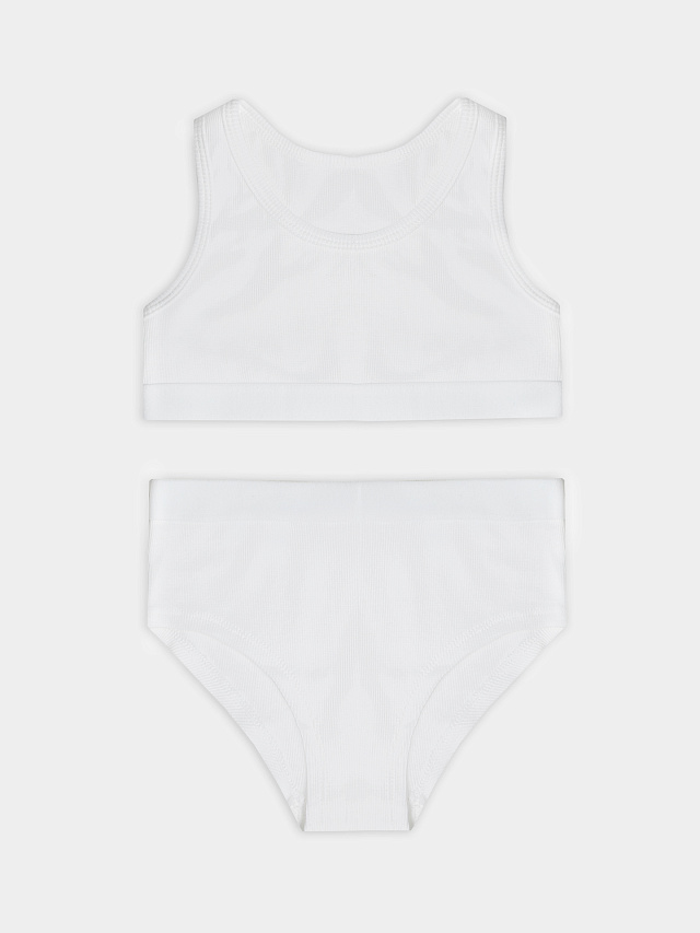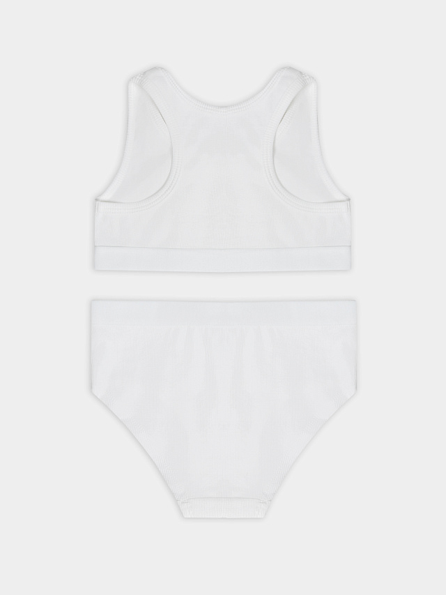 Трусики выполнены из того же дышащего материала, что и топ. Мягкая обработка швов предотвращает натирание, а эластичная тесьма по верхнему краю надежно фиксирует изделие. Комплект нижнего белья для девочки подходит для повседневной носки, занятий спортом или отдыха.