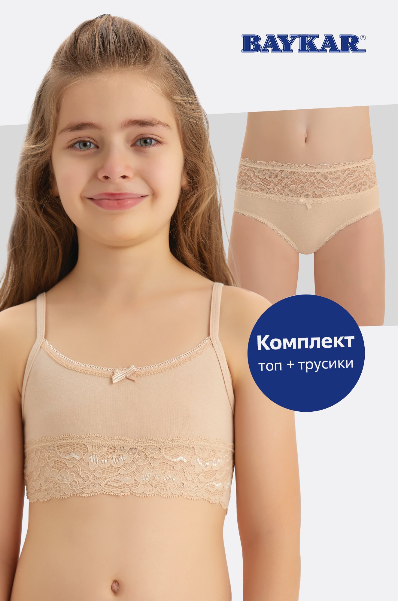 Кружевной комплект идеален на каждый день. Подростковое белье для девочки подойдет для походов в детский сад, на прогулки, в школу, в нем удобно спать. Качественное нижнее белье на девочку сохраняет форму после частых стирок, не скатывается.