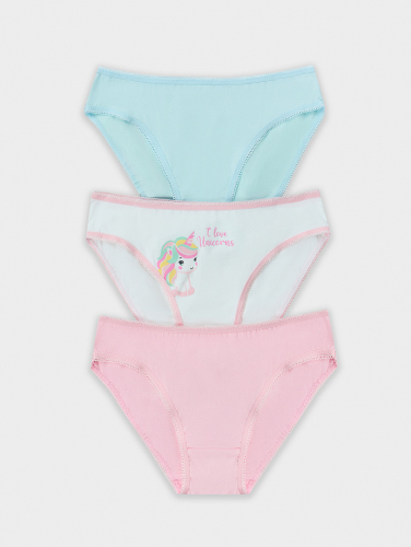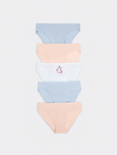 Комплект трусов-слипов (5 шт.) для девочек, в однотонных цветах и с принтом, с ажурным краем