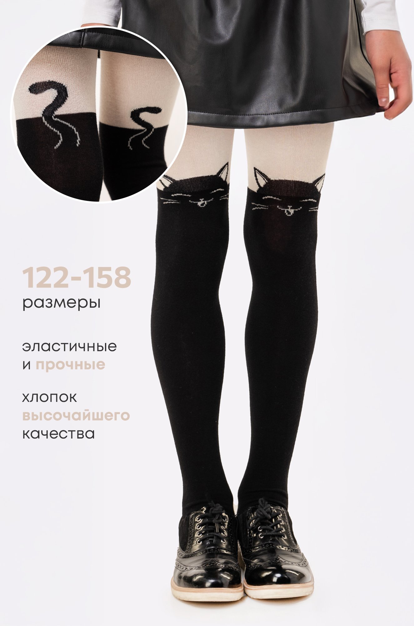 Стильные трикотажные колготки для девочек и девочек подростков украшены забавным рисунком кошечки, которые непременно вызовут улыбку и сделают любой образ ещё интереснее.