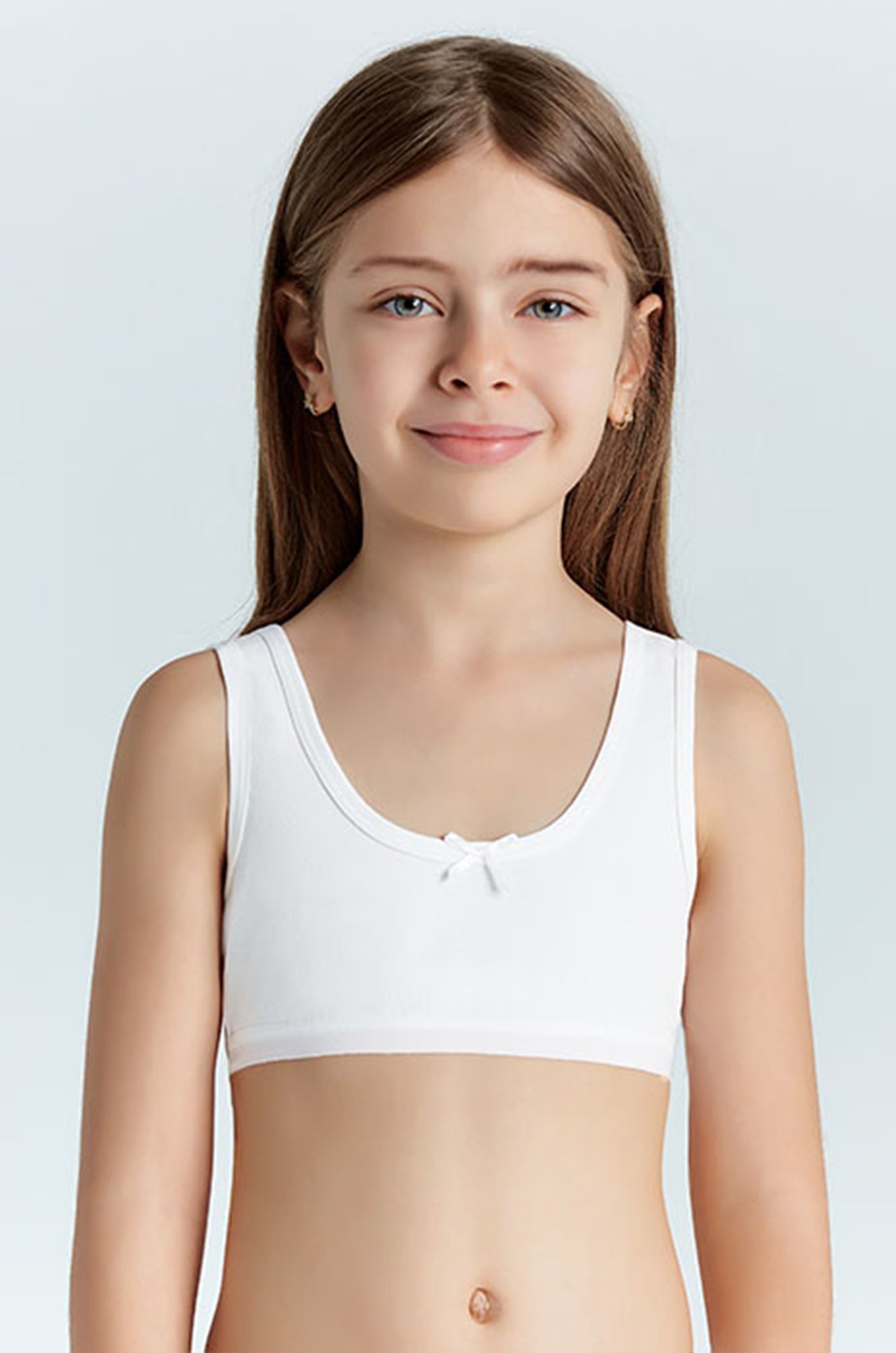 Белый топик для девочки и девочки-подростка облегающего кроя станет секретом её отличного настроения! Широкие лямки и аккуратный круглый вырез создают милый образ, а атласный бантик добавляет трогательную изюминку. Эластичные бейки в проймах и короткий крой делают детский бюстик невероятно удобным для активного дня.