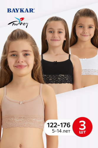 Классический подростковый бюстик из трикотажа с кружевом дарит идеальную посадку. Мягкие тонкие лямки не давят и не спадают во время активных движений.
